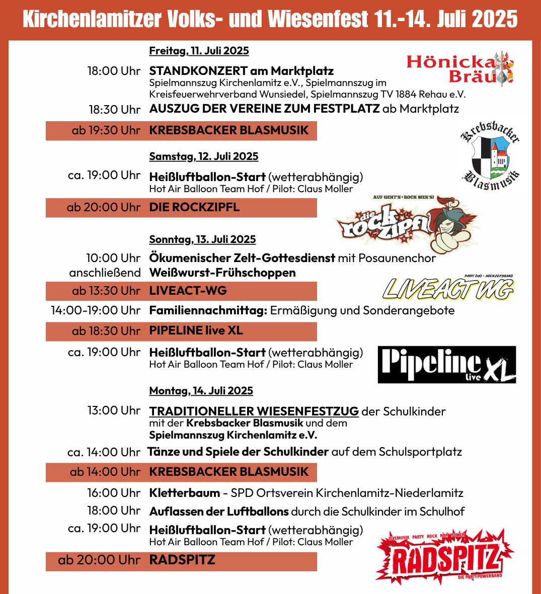 Die Stadt Kirchenlamitz lädt vom 11.-14. Juli 2025 zum traditionellen Volks- und Wiesenfest.